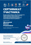 Сертификат участника во Всероссийском форуме"Воспитатели России: преемственность ценностей и смыслов семьи и детского сада в вопросах воспитания патриотичной и социально ответственной личности ребенка"