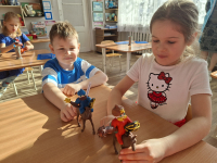 На занятиях ребята продолжили изучать историю России, богатырскую славу и преданность народа своей стране. Они узнали о богатстве народной культуры, особенностях характера и быта предков на примере русских богатырей, воспетых в литературе и искусстве.