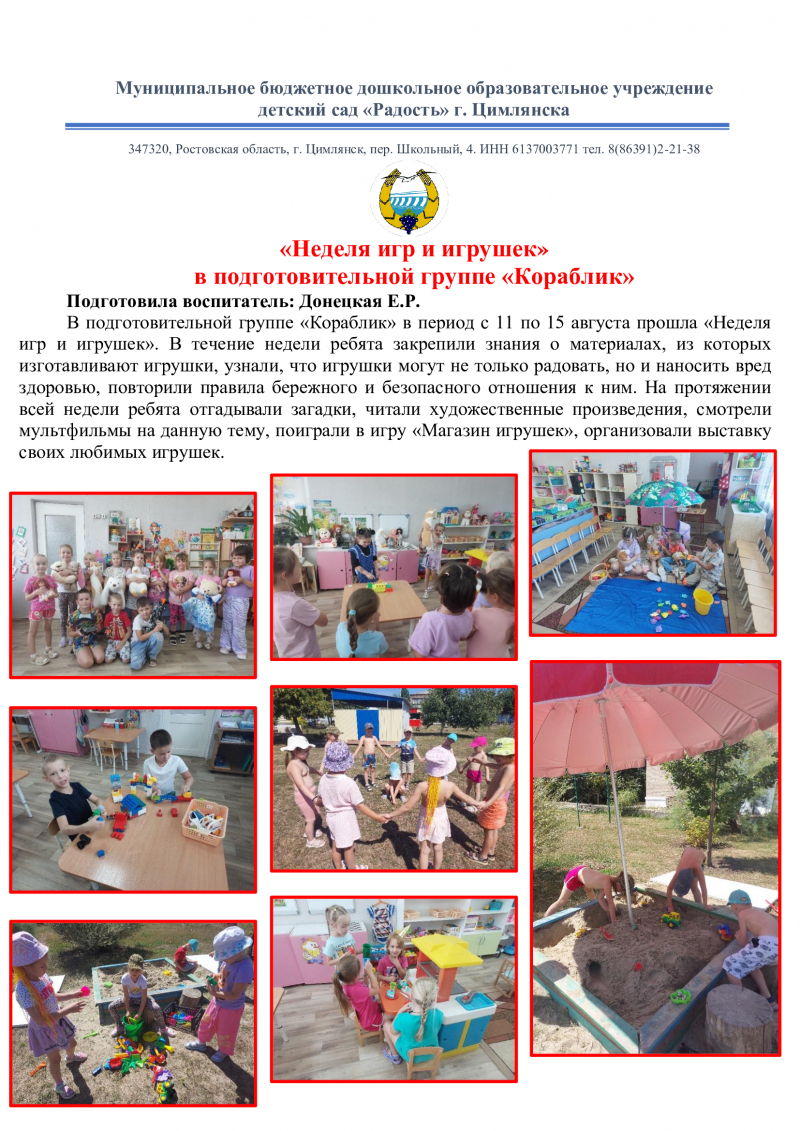 Отчет о проведении "Недели игр и игрушек" в подготовительной группе 2024-2025 уч.год
