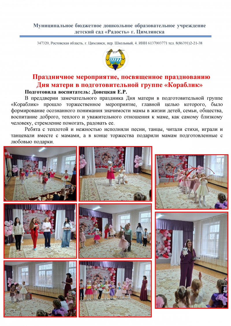 Отчет о проведении мероприятия, посвященного Дню матери в подготовительной группе "Кораблик" 2025-2026 уч.год